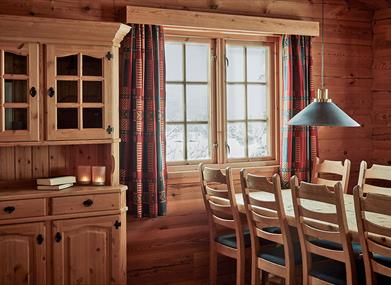 The cabin is 95-110 square meters and has 3 bedrooms (room 1: double bed, room 2: double bed, room 3: 2 single bunk beds), 2 bathrooms, one of which has a sauna, kitchen with dishwasher, oven, hob, microwave and fridge. Living room with TV, wireless Wifi and fireplace. The cabins are located approx. 150 meters from the hotel and have ski in/out to Gausta Ski Center and cross-country trails. Bed linen and towels are included