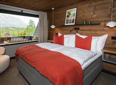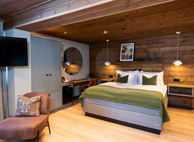 The hotel features 90 hotel rooms of various sizes, including allergy-friendly options, along with 43 traditional cabins and 12 practical apartments.
