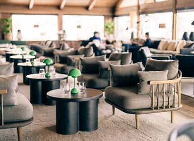 Kirk’s Bar & Lounge is Gausta's social hub, offering a stylish and warm atmosphere with large windows framing the spectacular view of Gaustatoppen.