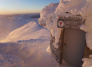 Gaustatoppen Tourist Cabin is located near the summit of Gaustatoppen (1,883 meters above sea level). The cabin was originally built in 1893 using natural stone from the mountain itself.