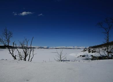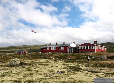 The lodge is staffed at Easter and in the summer season. It has 46 bunks in two-bunk and four-bunk rooms, a washroom, showers and a drying room. Out of season it is a self-service emergency shelter (20 bunks), accessible using the DNT cabin key.