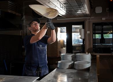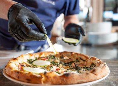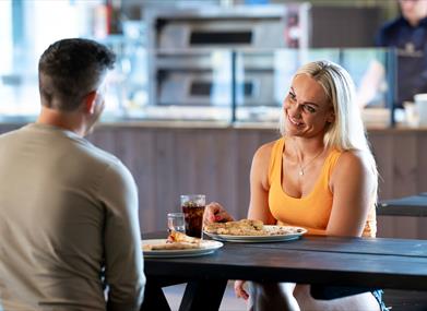Choose from freshly baked pizza with delicious fillings, burgers and bistro dishes. Or let the on-site barista prepare a delicious cup of coffee for you.