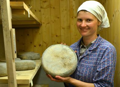 The high mountain pasture that their 10 milk cows graze on, gives the milk a wonderful taste and quality, so they can make tasty rjome (sour cream) and cheese. From the cream they make mountain butter and rjomegraut (sour cream porridge) that they can serve for you in the new hut.