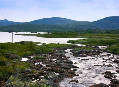 Kalhovd Tourist Cabin is a cosy lounge with a fireplace and a dining room seating 60 – 80 people. They serve breakfast, lunch during daytime and dinner in the evening; all for standard DNT prices. There is a small kiosk, and they have licence to sell alcoholic beverages.