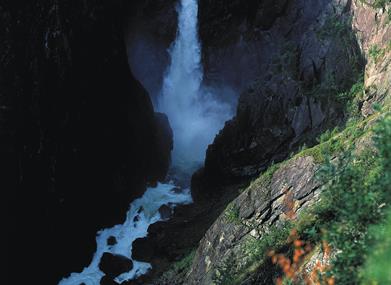 "After passing Skovbekken and reaching the cliff face close by, it seemed to me that I should see the waterfall. Finally and unexpectedly the path led out of the forest and on to a terrace on the mountainside, and there was the waterfall in all its glory. As if by magic, I was standing face to face with this great waterfall and a natural phenomenon, the power and beauty of which surpassed even the most spectacular dream. Neither words, brush nor colour can do justice to the Rjukan waterfall and its surroundings. But for he who is granted the privilege of standing on the terrace just opposite the Rjukan Waterfall and hears its thundering roar and observes the clouds of mist rising towards the sky, a picture of nature's majesty and power forms in his soul which will remain with him throughout his life."