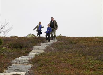 From here, you follow the gravelroad 800 meters. Then there is a stone path the next 1,1 kilometeres, called "Solstien" which ends up at "Kanonstillingen" (the canon position), a culture heritage and viewpoint.