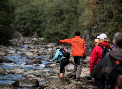 Groups are guided by Brave along the last part of the original saboteur route, down a steep river gorge and up towards the old railway tracks leading to the Vemork museum. The trail has rope sections, where participants climb down towards the river Måna, crossing the river and moving up towards the slope to the top of the railway tracks. Along the trail Brave guides participants through a timeline of the most celebrated commando raid in World War II history. At the top of the slope a warm local lunch will be served, before participants walk to Vemork museum for a sightseeing and a visit to the Heavy Water Basement. Brave guides year-round and cater to all types of private and tourist groups.