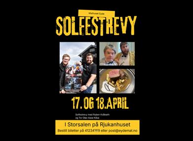 Join us for the Solfest Revue! Begin the evening with a welcome drink and a delicious dinner before the show. Choose between roasted beef tenderloin served with sautéed root vegetables and red wine sauce, or pan-seared trout from Hima with carrot purée, broccoli, and sour cream sauce.